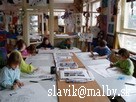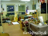 Interiér súčasného ateliéru od roku 2oo5 – Ul. Októbrová 32 a študenti v procese tvorby - od septembra do júna 2oo6