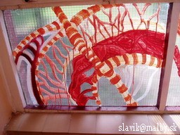 Skupina žiakov – pri maľbe s praktikantkou Jankou Kapovou – RADOSŤ / SMÚTOK štvrtok - december 2oo5